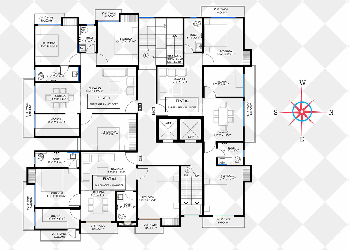 A BLOCK 3BHK CLUSTER PLAN